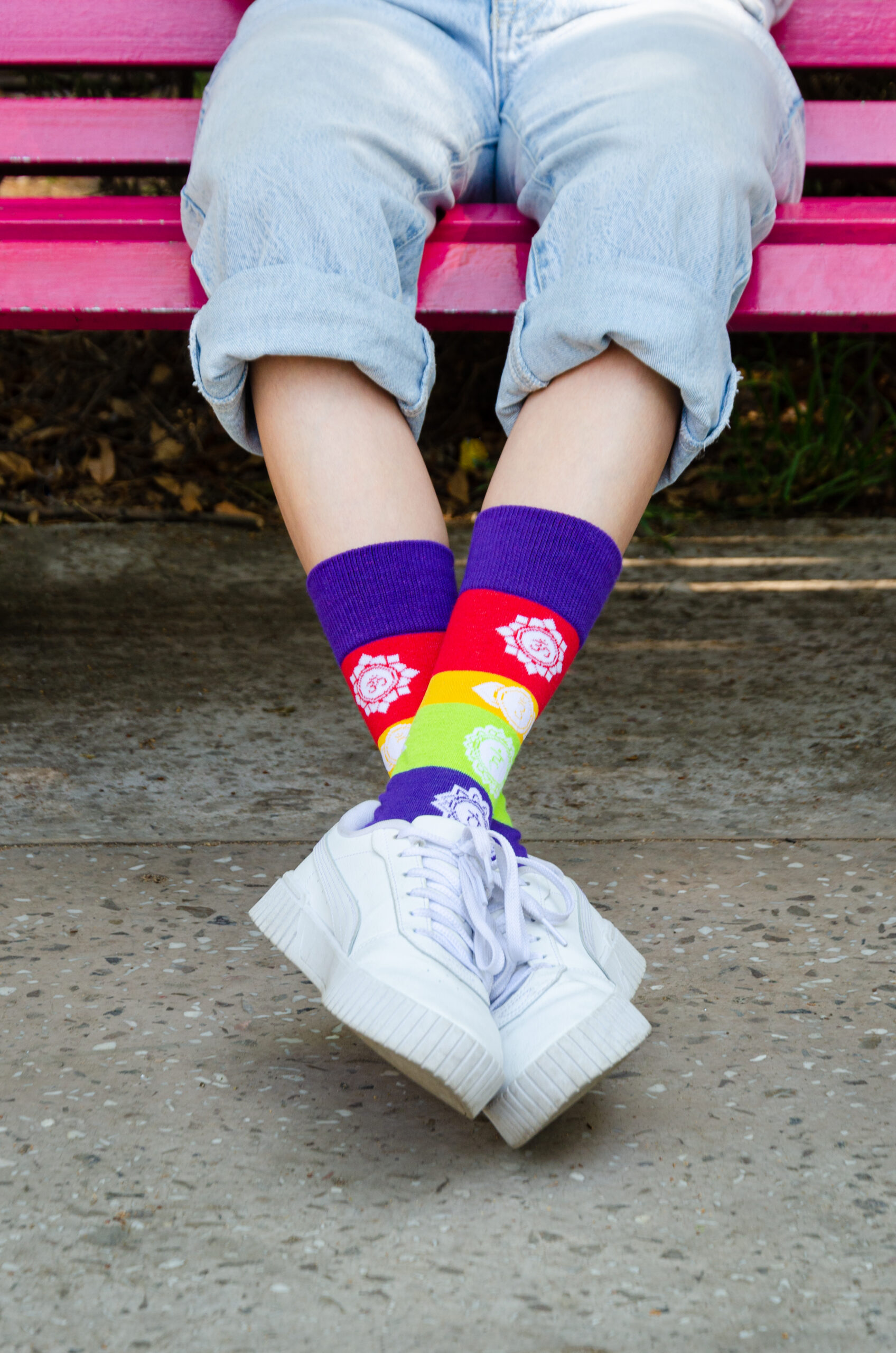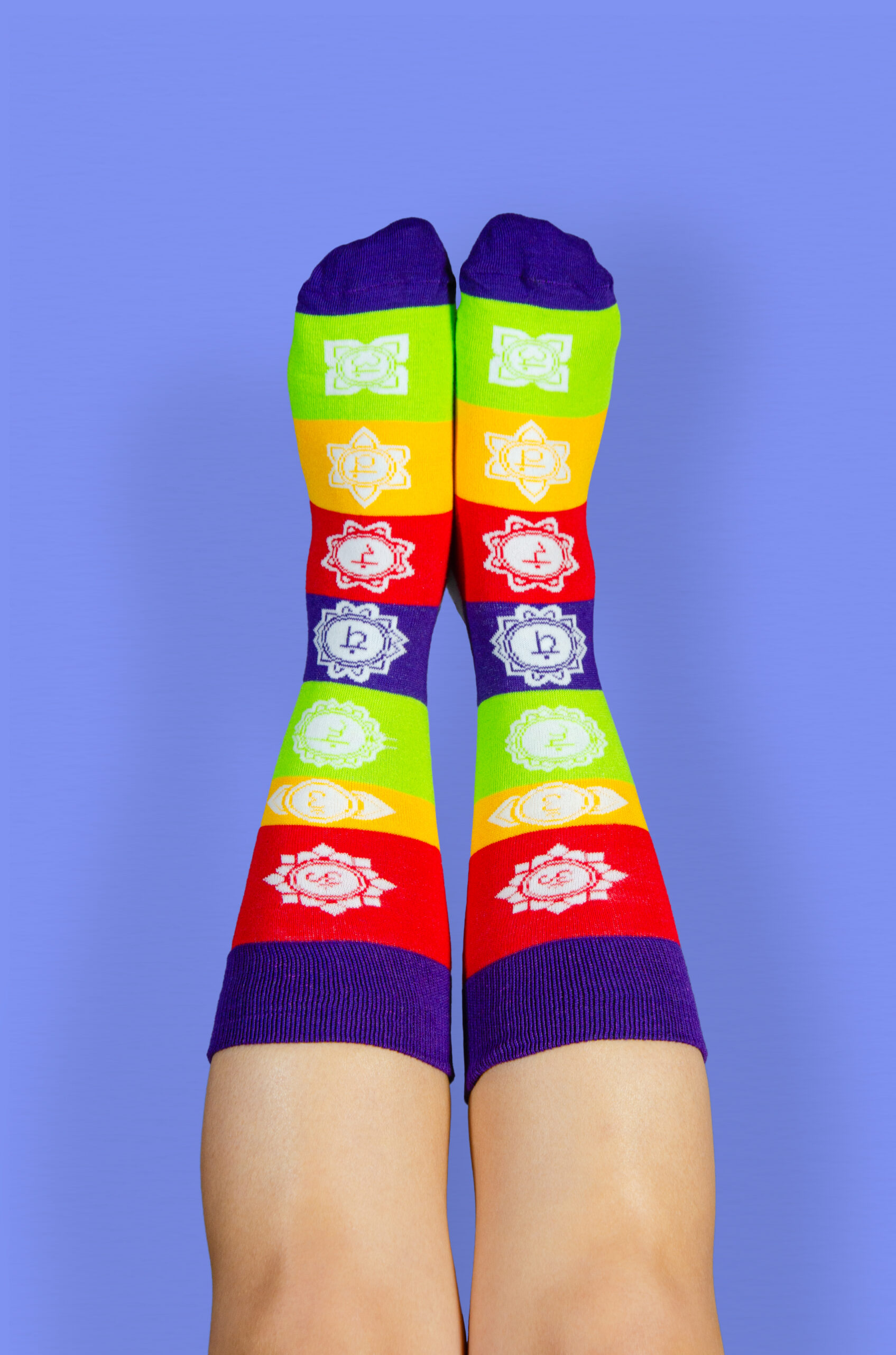 Encuentra tu equilibrio con nuestros calcetines de los 7 chakras. Cada color representa un centro de energía para que lleves tu armonía interior con estilo a cada paso.