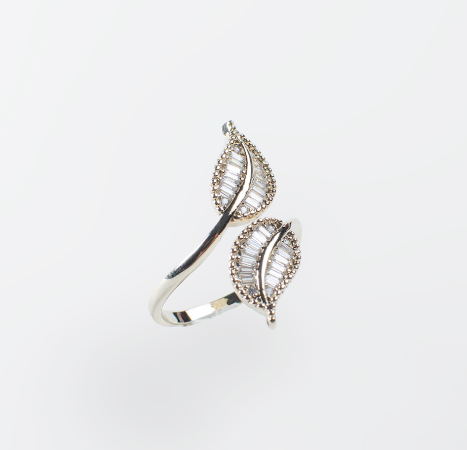 Elegante Anillo de Zirconias, Diseño Femenino de Delicadas Hojas, Diseño Romatico, Ajustable. Captura la Belleza de la Naturaleza