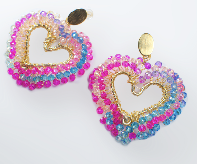 Sumerjete en el mundo boho con estos aretes aretes de corazón. Los crsitales de colores y el diseño artesanal le dan un toque bohemio y alegre a cualquier outfit