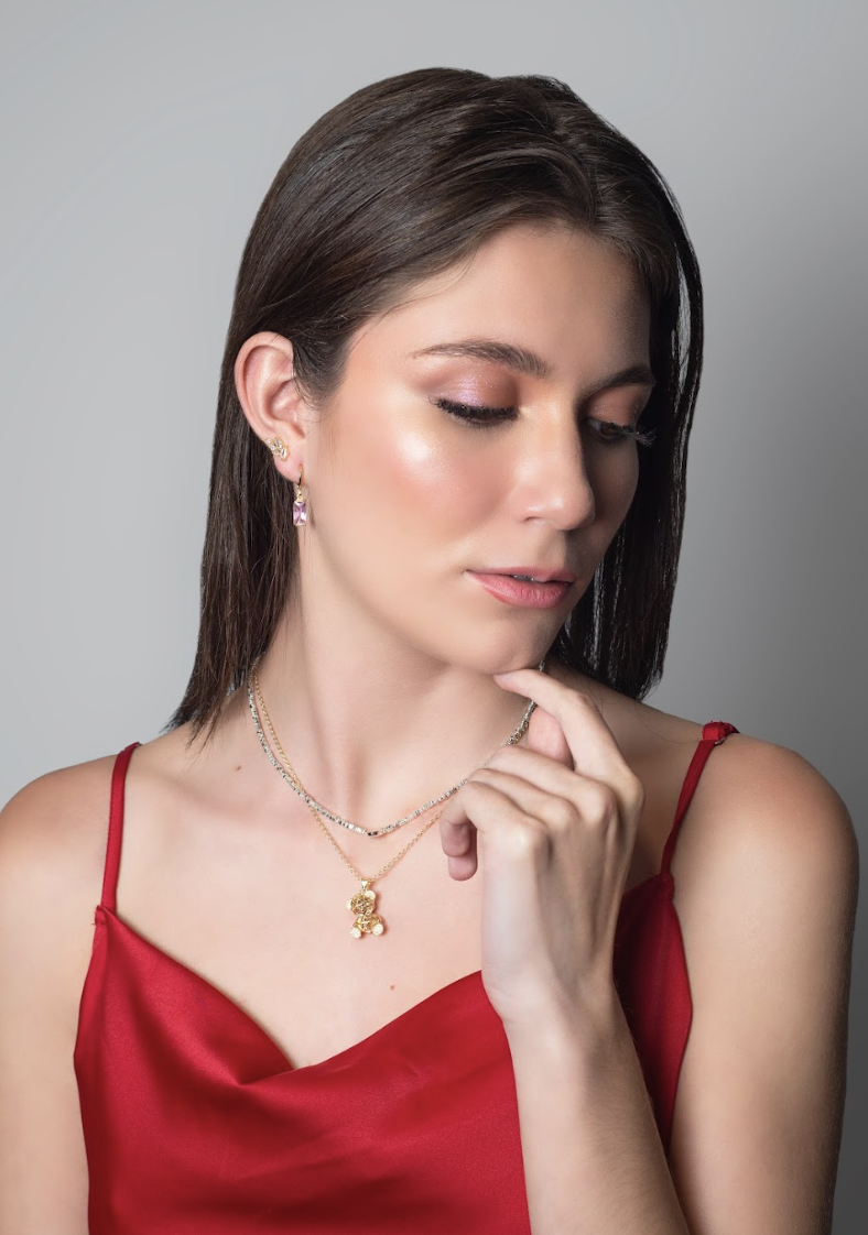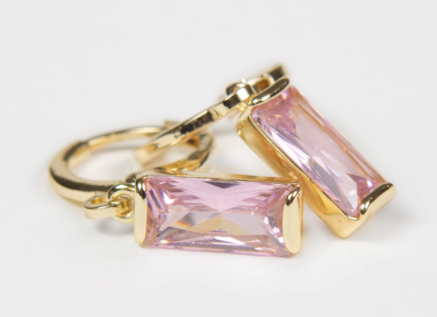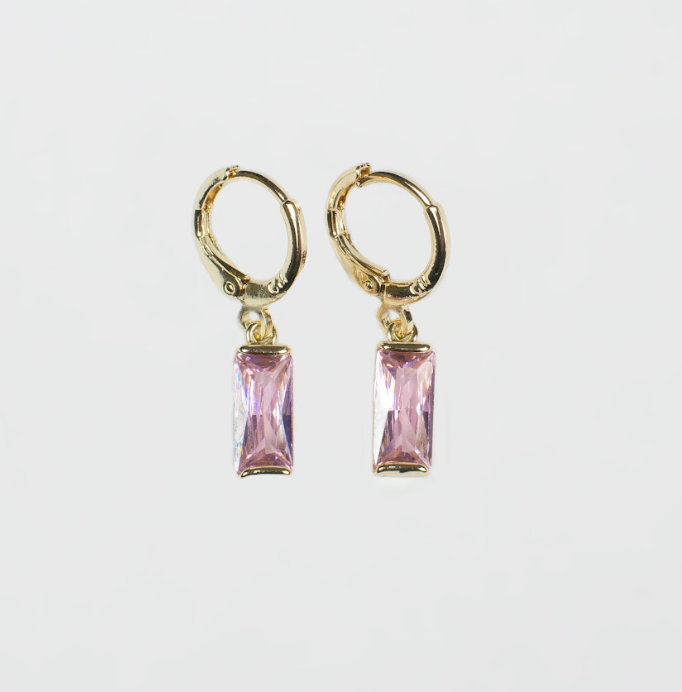 Aretes de aro (huggies) en chapa de oro son el accesorio perfecto para tu outfit. La zirconia rectangular rosa aporta un toque de color y luminosidad, convirtiendolos en una pieza versatil.