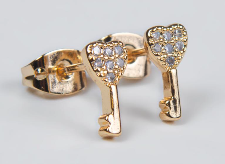 Eleva tu estilo com estos bellos aretes de llave con zirconias brillantes. Su diseño sofisticado y su acabado dorado los convierte en piezas atemporales