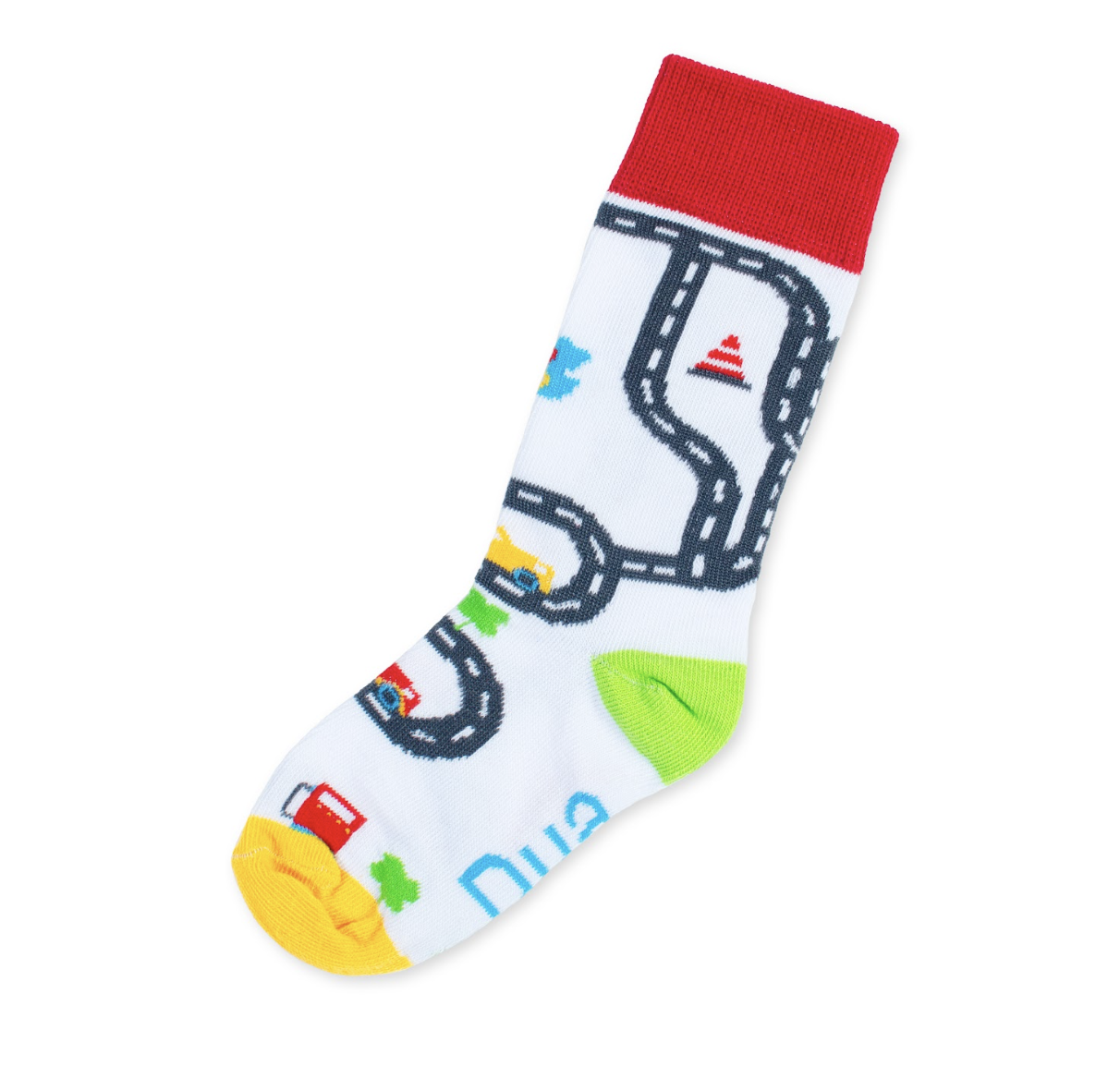 Calcetine Infantil De Moda Con Diseño de Carretera y Autos Para Niños, Un Par de Algodón Transpirable Y Cómodo, Estilo Casual Unisex Para Usar En Todas Las Estaciones Al Aire Libre o dentro del Hogar