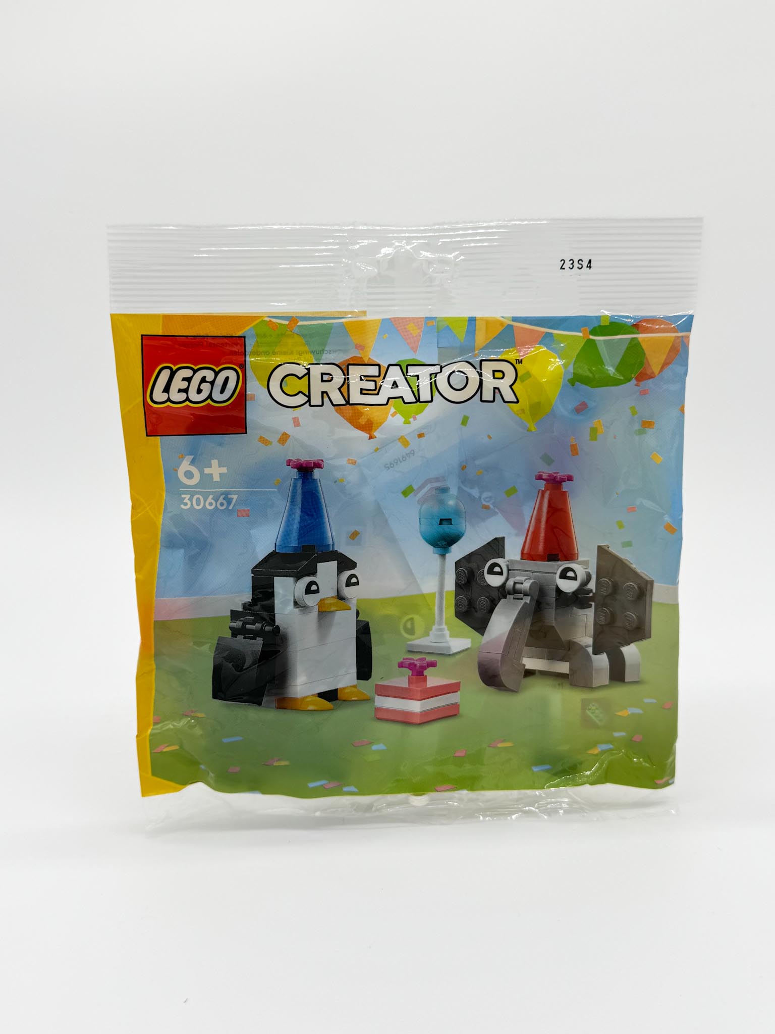 Haz que cada cumpleaños sea especial con el set LEGO Creator 30667 – Fiesta de Cumpleaños Animal. Este encantador set de 72 piezas permite a los niños construir un pingüino y un elefante con sombreros de fiesta, acompañados de un globo y un regalo, fomentando la creatividad y el juego imaginativo.