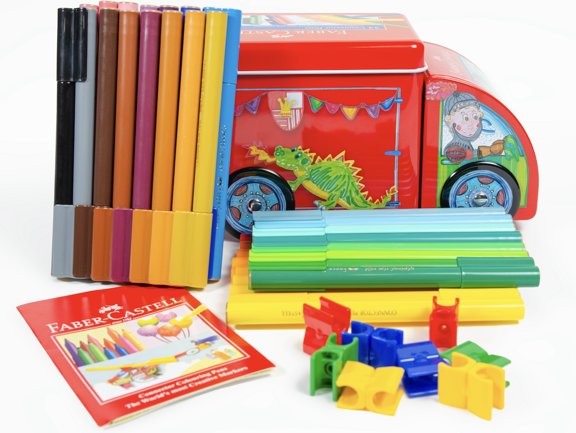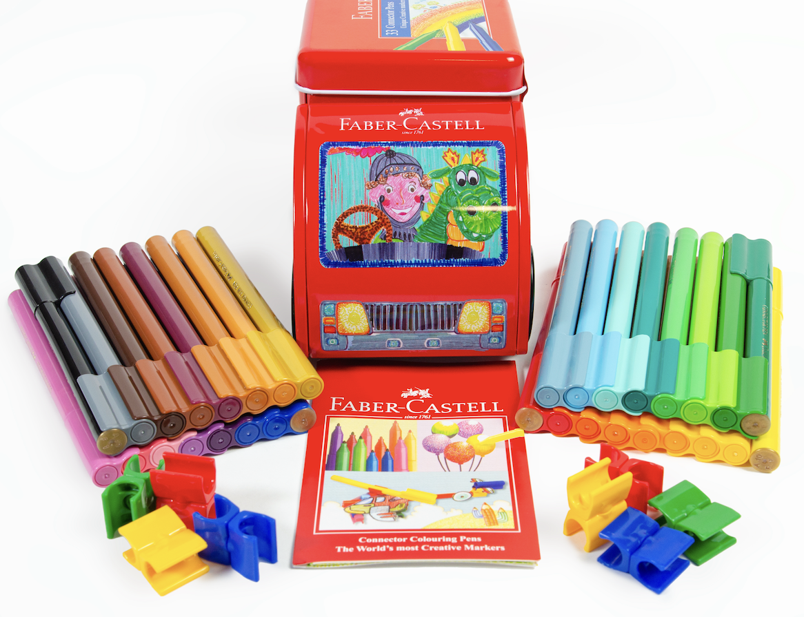 Plumones Connector para niños mayores de 3 años. Tintas brillantes y durables base agua. Las tapas se pueden unir entre sí. Incluye conectores adicionales para unir los plumones entre si y hacer figuras.