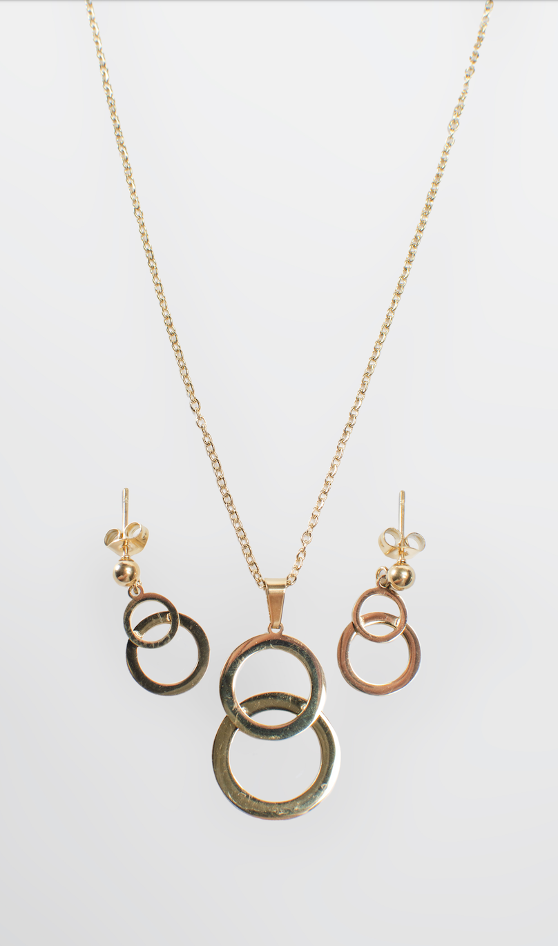 Juego de collar y aretes con diseños en circulo