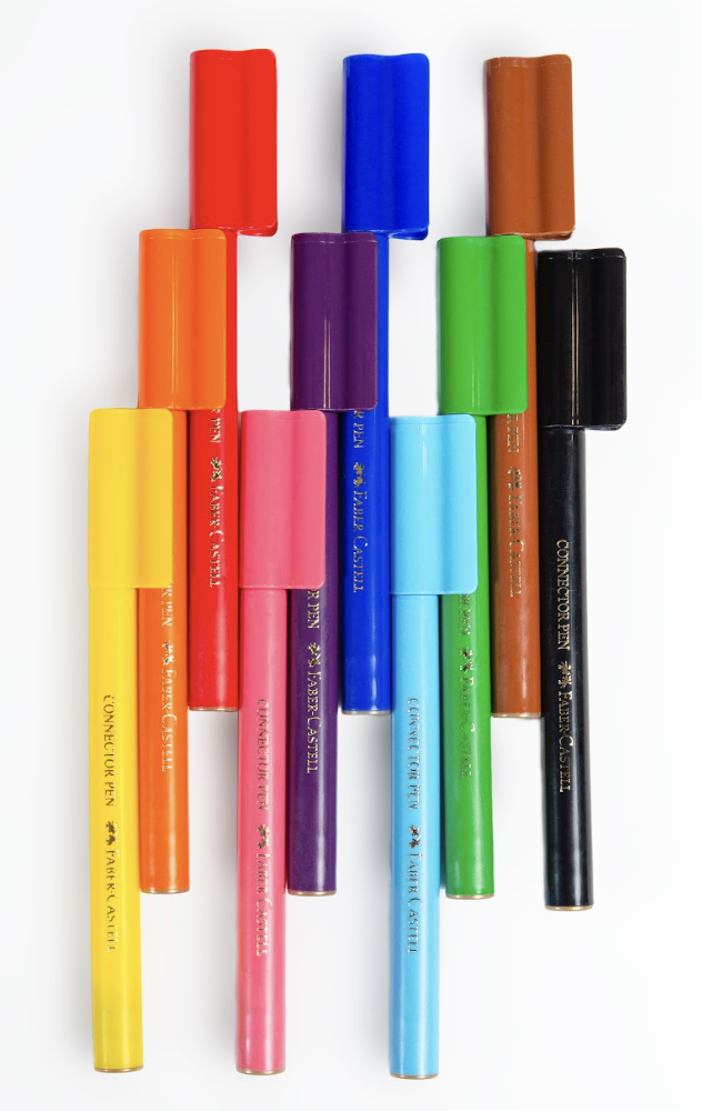 Plumones Connector para niños mayores de 3 años. Plumones brillantes y durables base agua. Las tapas se pueden unir entre ellas. Incluye conectores adicionales para unir los plumones entre sí y hacer figuras.