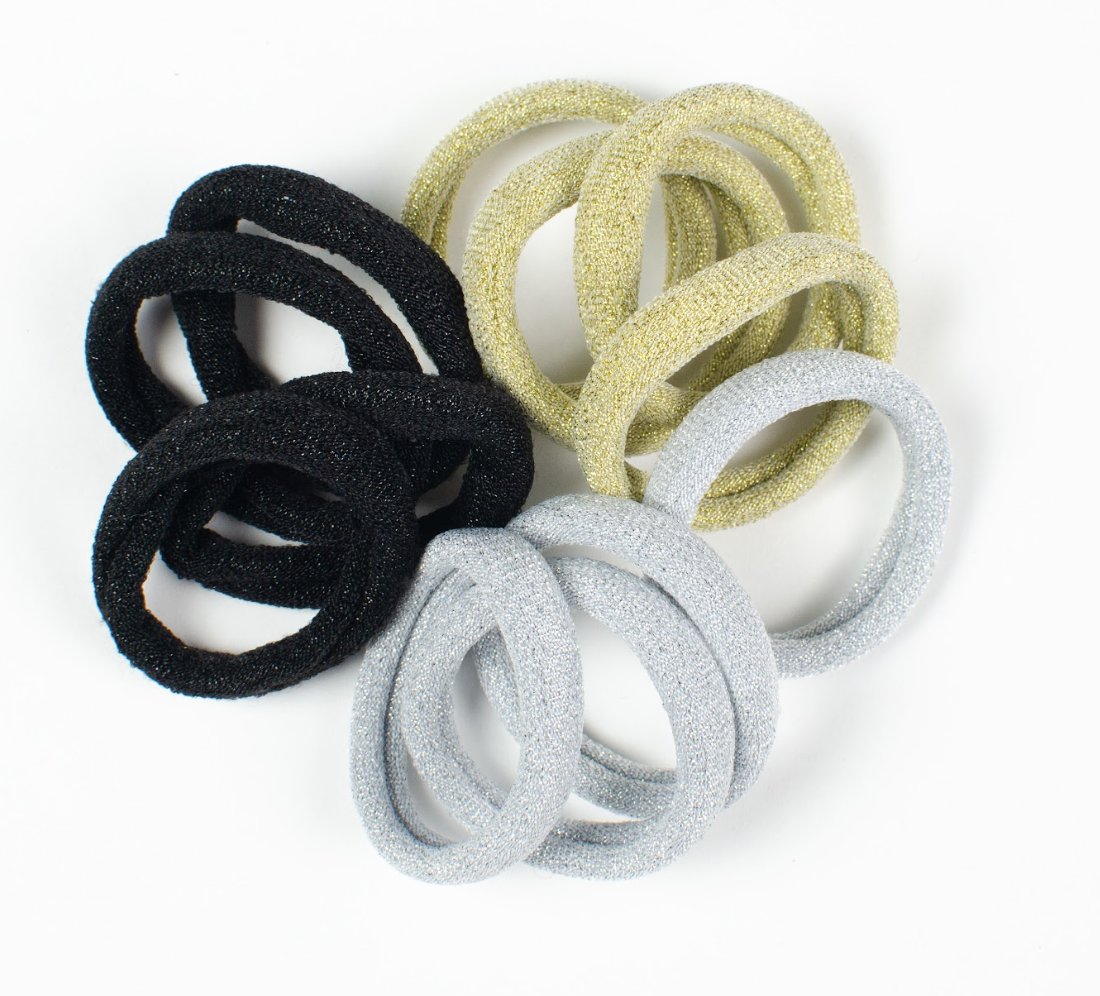 Hermosas Ligas Metalicas para el Cabello, Ideal para Ocasiones Festivas – Accesorios para el Cabello en Colores Metlicos, Negro Dordo y Plateado